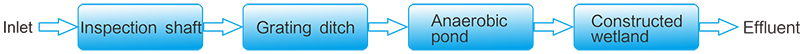 The process flow chart of "Anaerobic pond + constructed wetland" is as follows: